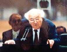Als Alterspräsident hält er im November die Eröffnungsrede im Bundestag, der die CDU/CSU-Fraktion (außer Rita Süssmuth) demonstrativ den Applaus versagt.